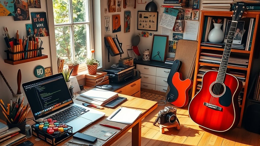 In today’s world, many creators turn their hobbies into side hustles by leveraging social media, digital assets like NFTs, and launching personal brands. You can build a loyal following on platforms like TikTok and Instagram, monetize content through sponsorships, and create merchandise that resonates with your audience. Additionally, more stars are owning brands, exploring new markets, and embracing diversity to grow sustainably. Stick around to discover how these strategies can turn your passions into profitable ventures.