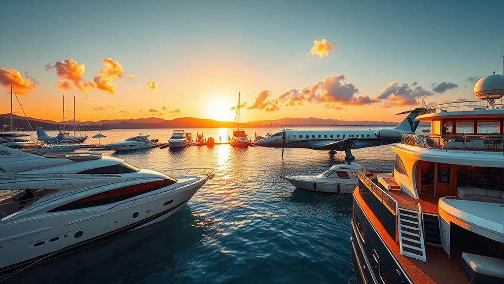 Charters have become a powerful lifestyle statement for the luxury elite, emphasizing eco-friendly and one-of-a-kind experiences. You can indulge in luxury yacht interiors that blend opulence with sustainability, showcasing innovative materials and design. These vessels feature maritime eco innovations like solar panels, advanced waste management, and hybrid propulsion systems, reducing environmental impact without sacrificing comfort. Choosing eco-conscious charters signals your commitment to responsible luxury while enjoying breathtaking itineraries. Unique experiences are curated to match your personal interests, from secluded island escapes to cultural explorations, all while minimizing ecological footprints. This approach elevates your lifestyle, demonstrating that exclusivity and sustainability can coexist seamlessly. As the market evolves, eco-friendly charters become the ultimate statement of sophistication and environmental awareness.