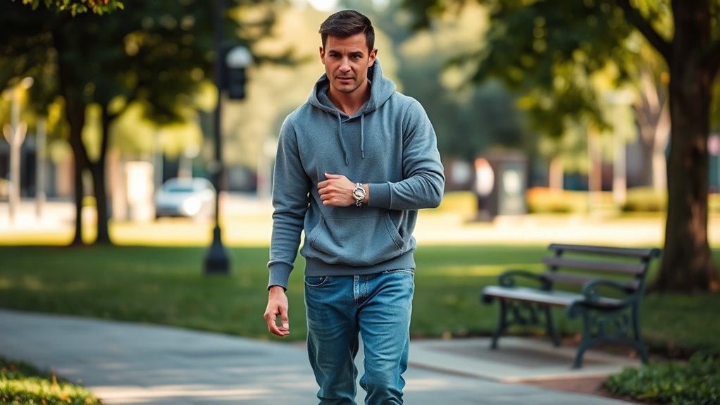 Think of your wardrobe as a well-curated playlist — versatile layers and sustainable fabrics are the key tracks. Male celebrities favor sleek black jackets, minimalist tailoring, and neutral tones that work for any occasion. They often choose timeless staples like crisp white tees and functional boots, making their style effortlessly versatile. These pieces become the backbone of their low-key, polished looks, proving that simplicity truly is the ultimate sophistication.