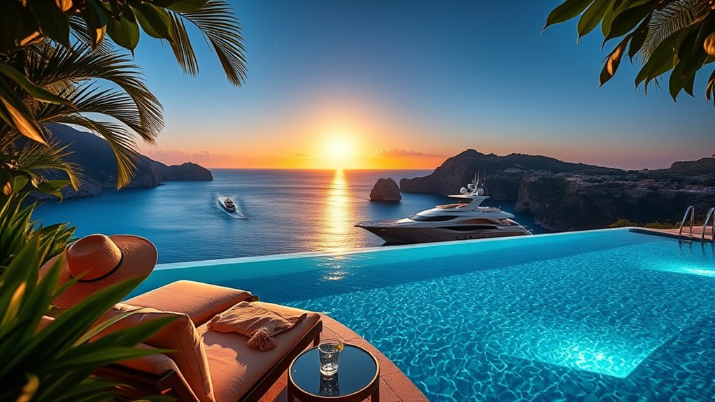 After experiencing the secluded luxury of Caribbean islands, the Mediterranean coastline beckons with its timeless charm and glamorous allure. You’ll be captivated by the region’s rich historical architecture, from ancient Roman ruins to picturesque coastal villages with centuries-old churches. The local culinary scenes elevate your experience, offering fresh seafood, regional wines, and flavorful Mediterranean dishes that reflect centuries of tradition. Picture strolling through charming towns with narrow cobblestone streets, each corner revealing a piece of history. Emphasizing natural materials and rustic decor elements further enhance the authentic Mediterranean ambiance. Glamour by the coast isn’t just about the scenery; it’s about immersing yourself in a culture that blends heritage with luxury. Whether relaxing in a seaside villa or exploring historic sites, this hotspot delivers an authentic yet opulent escape that stars love.