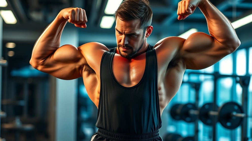 You might wonder if he used supplements or special routines. He definitely incorporated supplements like whey protein, BCAAs, and natural testosterone boosters to support muscle growth and recovery. His training involved 5 to 6 weekly sessions, alternating between bodybuilding and conditioning exercises to build muscle and improve endurance. Following a strict diet, avoiding processed foods, and increasing water intake also played a vital role in his impressive transformation.