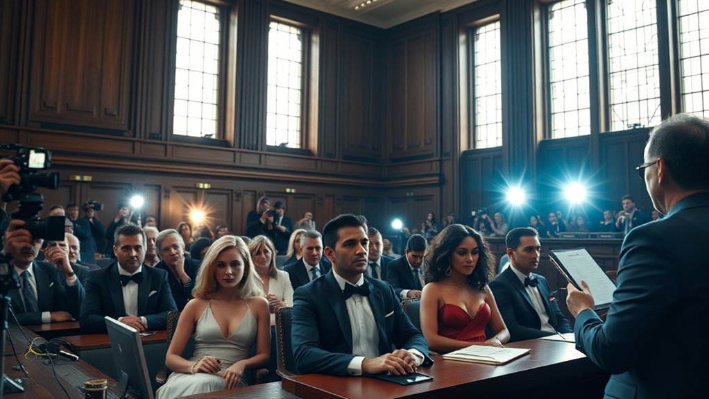 Media coverage and public opinion now play a decisive role in shaping the outcomes of celebrity legal battles. Your perception of a case can influence jury decisions, sway legal strategies, and impact celebrity reputation management. The media amplifies narratives through celebrity endorsements, which can sway public sentiment either in favor or against the accused. Paparazzi influence intensifies exposure, often sensationalizing details to generate headlines, regardless of accuracy. This relentless coverage creates a spectacle that shapes societal views and pressures legal proceedings. Key ideas include:
