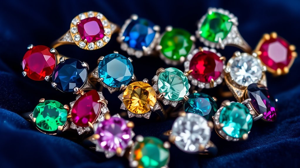 If you’re looking for the perfect gift, I highly recommend exploring the top 15 birthstone rings for 2025. These pieces combine stunning craftsmanship, vibrant gemstones, and versatile styles, making them meaningful keepsakes for birthdays, anniversaries, or just because. Whether you prefer gold-plated, sterling silver, or customizable options, there’s something for everyone. Keep going to discover how each option can match your style and sentiments exactly.