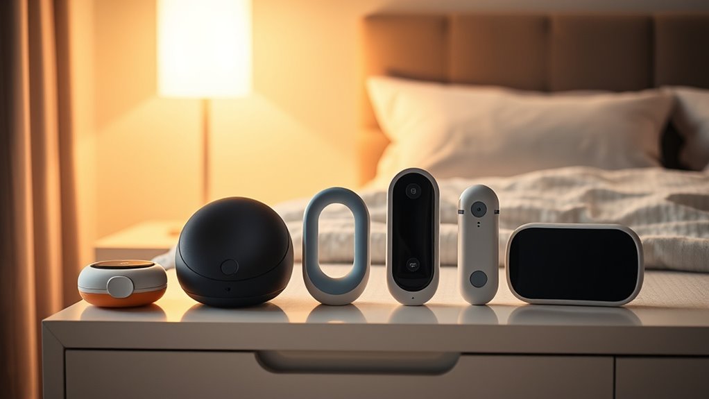 If you’re craving a sleep device with customizable sound and light options, I recommend exploring options like the Philips SmartSleep Sleep and Wake-up Light and the Casper Glow. Picture waking up to your perfect blend of gentle light and soothing sounds, tailored exactly to your mood. These devices let you personalize settings, creating a sleep environment that’s uniquely yours—making bedtime and wake-up routines more peaceful and effective.