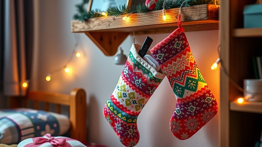Looking for the best stocking stuffers that will brighten a college student’s holiday? I recommend small tech accessories like portable power banks or USB drives to keep them connected. Fun games like “Drunk, Stoned, or Stupid” add laughs, while handy items like an electronic organizer help keep things tidy. Don’t forget inspiring gifts or practical to-do pads to boost motivation. If you keep going, you’ll discover more ideas to make their holiday extra special.
